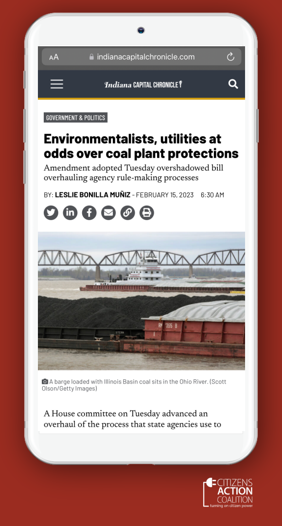 House Bill 1417 also remains on the House Calendar for the second week in a row. HB1417 is a dangerous piece of legislation that will unquestionably lead to unaffordable utility bills for all utility consumers (including electric, gas, water, and wastewater) by significantly eroding IURC authority. The bill will allow utilities to self-approve and book any expenditures they make, and all but guarantees that they will recover those costs from ratepayers in a future rate case, including financing costs and return on investment (profit margin) for those investments.